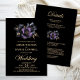 Faça uma declaração com nosso convite de casamento preto, tudo em um, com um motivo floral roxo e cinza. Este design dá o tom para uma celebração inesquecível. O texto personalizável permite adicionar sem esforço os nomes da noiva e do noivo, a data do casamento e os detalhes necessários de sua celebração. Projetado para o casal econômico, a localização do local de recepção, a solicitação de resposta RSVP, os detalhes de acomodação e qualquer outra informação que seus convidados possam exigir podem ser incluídos no verso deste convite, economizando dinheiro em papelaria extra. Vários tipos de papel e estilos de canto estão disponíveis para seus convites exclusivos, juntamente com a opção de download.