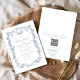 Convites Casamento Floral de Código QR Azul Vitoriano