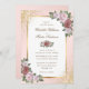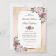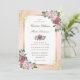 Convide seus hóspedes para sua elegante festa de casamento de ouro e blush com estes convites florais de casamento com flores cor-de-rosa e verde armando os detalhes de casamento dentro de uma moldura de ouro adornada com confete de ouro. Itens correspondentes disponíveis.
