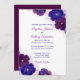 Convites de casamento elegantes com fundo floral de aquarela em ameixa, roxo, violeta e berinjela com esquema de cor azul. Perfeito para casamentos de outono/outono. Modelos de convite editáveis. Todas as fontes, tamanhos e cores do texto podem ser alterados. Entre em contato com o designer para obter solicitações especiais.