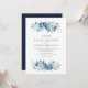 Um design de tema de casamento azul e branco com um dorso azul e flores azuis e brancas pintadas à lua. Um design perfeito para o seu verão, primavera e casamento no inverno. Você pode personalizar o texto e os detalhes de cor neste modelo de convite de casamento.