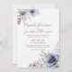 Este elegante e moderno convite de casamento apresenta arranjos florais de aquarela numa paleta de cor pastel de azul poeirento, lilás de urze e bege. A tipografia moderna e o reverso são coordenados numa cor rica