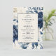 Convite para casamento floral de cor azul-marinho Dusty e branco