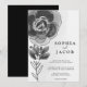 Convite para Casamento Floral de Pintura de Aquarela Preta e Dourada.