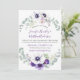 Convites para casamento de flores brancas e roxas roxas. Um quadro lúcido de flores de aquarela em branco, lavanda, roxo e violeta, juntamente com eucalipto e folhas roxas e outros verdes. Os modelos de texto são fáceis de personalizar usando texto de caligrafia de ornamentado e uma fonte moderna. Se você quiser esta design em outro produto, ou precisar de ajuda de alguma forma, por favor, entre em contato comigo através da minha loja.