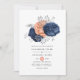 Coral - pêssego rústico e marinho azul d'água - convite de casamento floral com folha de prata de folha falsa projetada para ser rápida e facilmente personalizada de acordo com as suas especificidades de evento.