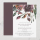 Um belo convite para o casamento no outono, com um grande buquê floral de cor d'água de roxo mutado/beringela e flores laranja com verde. Os detalhes do seu casamento são em preto e roxo/berinjela mudada. O reverso está em roxo/beringela com mudo sólido.