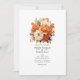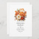 O convite para o casamento floral de laranja e creme queimados. O código QR no verso direciona para o seu local de casamento onde o pessoas pode aprender mais e rsvp.