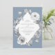 Um elegante e moderno convite ao casamento floral com um belo arranjo de diamante de flores aquáticas em tons cinzas sobre um elegante fundo azul empoeirado. O verso do convite apresenta um delicado padrão de diamante que complementa a forma de diamante na frente. Podemos personalizar as cores das flores para combinar com o tema do seu casamento; basta nos contactar no modernmatrimony(at)gmail(dot)com e permitir uma semana de personalização.