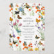 Um belo design de casamento de aquarelas com flores silvestres e borboletas. Um arranjo colorido de flores e borboletas selvagens num jardim floral. Um design de convite para o casamento ideal para quem ama borboletas coloridas, florais de aquarela, ilustrações de flor silvestre e arte temática botânica. Também estão disponíveis artigos de papelaria para o casamento e outros formatos de convite de casamento.