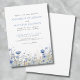 Convite para Casamento de Flor Selvagem Azul Dusty. Infusamos seu casamento com a beleza serena da natureza através dessa design, perfeita para comemorações do primavera ao outono. No fundo, uma delicada borda apresenta flores silvestres poeirentas de cor azul-d'água e verde macio, criando uma elegante e tranquila estética. O texto é exibido em uma sofisticada mistura de fontes azuis e escuras de cinza, combinando um roteiro manuscrito com a tipografia serif moderna para um aspecto polido e contemporâneo. Este design capta o charme de um campo florescente enquanto permanece versátil o suficiente para casamentos russos ao ar livre ou comemorações urbanas quic. Totalmente personalizável, você pode ajustar o texto, as fontes e as cores para refletir seu estilo exclusivo. Disponível como convite impresso ou arquivo digital baixável, este convite combina elegância do eterno com beleza natural, definindo o tom perfeito para seu dia especial.
