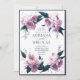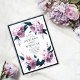 Este convite de casamento moderno e elegante é perfeito para o verão ou primavera. Apresenta flores de pénia pintadas a aquarelas e folhas verdes em torno da tipografia do na moda e borda. O esquema de cores inclui roxo-rosa, azul-lacre e branco. É lindo, único, clássico, clássico e lindo, o design perfeito para impressionar seus convidados.