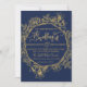 Convites Casamento floral de folha de Marinho moderno e dou