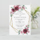 Convite de casamento floral de Watercolor. As flores pintadas à mão são feitas com aquarelas, em vinho vermelho assado e cor-de-rosa rosa empoeirado, com tela verde e folha de ouro digital. Um convite para casamento floral moderno com o quadro digital de folha de ouro.