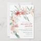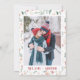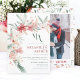 Este belo convite para o casamento floral de inverno pintado à mão combina tons suaves de blush em vermelho, rosa, bege, verde delicado, e elementos florais úmidos rústicos e quentes para criar um design elegante e convidativo. Apresentando seus nomes em uma tipografia de destaque com os detalhes do casamento claramente exibidos, este convite dá o tom para uma encantadora celebração. O verso inclui uma fotografia pessoal, que adiciona um toque pessoal e entusiasmante com um padrão floral de aquarela de inverno de Natal. Perfeito para casamentos no inverno com uma atmosfera romântica e aconchegante.