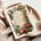 Uma design de casamento impressionante, enquadrada por uma fronteira de colheita de ouros e adornada com uma cascata exuberante de florais de verão em tons de vermelho, laranja e pêssego. Inspirada em ilustrações botânicas clássicas e no estilo do ornamentado do século XIX, esta peça combina elegância e vibração natural — perfeita para uma celebração de jardim ou ao ar livre com talento eterno.