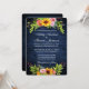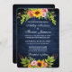Madeira Marinho Rústica Azul, Watercolor Floral de Girassol com Rosas, Pêonias e Casamento Verde - Bordas Arredondadas
