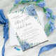 Hipóteses azuis num fundo branco. Um convite perfeito para qualquer temporada. As drangas de água são lindas. Clássico.