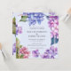 Convide convidados para comemorar o seu casamento com nossos convites de casamento florais, cor-de-rosa, roxo e azul, com nossos na moda florais. Simples, mas elegante, com texto de cinza sobre fundo azul macio. Adicione os detalhes do evento editando o texto nas caixas de texto fornecidas. Projetado para você pelo Evco Studio © 2019 em www.zazzle.com/store/evcostudio