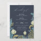 Antigas flores e folhagem inglesas em tons de bege azul e envelhecido, belo convite para o casamento. A cor de fundo, mostrada em azul de oxford, na frente da placa pode ser personalizada. A placa apresenta um padrão de suporte.