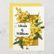 Vintage yellow jasmine floral primavera de dois lados convite para casamento. Um adorável design floral que mostra uma pintura antiga de um galho jasmim amarelo e seus nomes na frente enquanto seu texto é colocado atrás em um quadro branco fora com uma borda amarela.