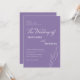 Este elegante, simples e minimalista convite de casamento apresenta uma flor branca e um texto moderno com uma delicada cor de lavanda de fundo.