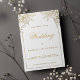 Este simples luxo é branco e ouro, elegante convite para casamento floral. Estes convites clássicos de preto e ouro são perfeitos para qualquer garota de vidro elegante e sofisticada. Este design é perfeito para um evento de tendências e na moda. Design com a sua própria mensagem e informação. Todas as designs são impressas.