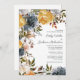 Amarelo elegante, azul marinho, e convite para casamento floral e verde branco. Entre em contato conosco para obter ajuda sobre a personalização ou produtos correspondentes. Os nomes da noiva e do noivo estão em uma letra elegante.