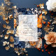 Marinho azul, laranja queimado e convite para o casamento floral de verão. Ideal para um casamento no jardim de verão.