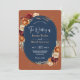 Convite para casamento floral de marinho de laranja de na moda outono. Celebre seu amor com este convite para o casamento de na moda outono, com uma combinação rica e elegante de laranja quente e flores de marinho profundo. Este convite maravilhosamente desenhado captura a essência do outono com sua ousada, mas sofisticada paleta de cores, perfeita para um casamento nominal. Detalhes florais deliciosos e tipografia elegante adicionam um toque de romance e refinamento, fazer ideal para temas de casamento modernos, rústicos ou clássicos. Defina o tom para seu dia especial com este eterno e convite para chic.