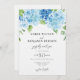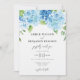 Mão pintou o convite de casamento floral original de aquarela. Hídranga azul elegante e moderna é um convite para o casamento. Você pode personalizar o texto, o estilo da fonte, a cor e o tamanho em frente e atrás do convite. Este convite faz parte de um conjunto de casamento completo com papelaria correspondente.