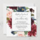 Um belo convite de casamento floral de aquarela quadrada no popular esquema de cores azul marinho, vermelho borrado e rosa pincelado com verde espalhado por todo o lado. Este esquema de cores é uma bela escolha para o outono ou casamentos no inverno, mas também funciona bem no primavera e no verão. Personalize o modelo de texto com os detalhes do casamento.