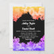 Este elegante convite de casamento floral é perfeito para um casamento floral de verão moderno. A design romântica apresenta um quadro floral neon botânico de jardim com elegante tipografia branca sobre fundo preto.