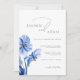 Apresentando nossos Simples Convites de Casamento Floral de Opulência Azul Real, uma combinação perfeita de sofisticação e encanto. Apresentando um espantoso design azul brilhante de delicadas flores azuis, esses convites evocam um senso de elegância botânica moderna ideal para um casamento no inverno. O layout minimalista garante uma apresentação simples, mas impressionante. Abrace a beleza do azul real e da arte floral para dar o tom para o seu dia especial