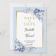 Anuncie seu casamento em estilo com este elegante Cartão Salvar a Data com florais românticos de aquarela em azul macio e delicado sotaque de ouro — lindamente emparelhado com sua foto favorita. O layout moderno permite que você carregue facilmente sua própria imagem, fazer-a exclusivamente sua. Perfeito para casamentos de jardim, eventos de temas azuis, ou qualquer celebração romântica. Totalmente editável para personalizar nomes, data e local. Projetado para coordenar com a Coleção de Casamentos Azuis em Pó de cheio, incluindo convites, cartões RSVP e muito mais.