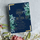 Convites Casamento floral de ouro azul-marinho tropical