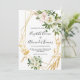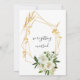 A elegante cor-d-água branca, cor-de-rosa, floral de pénia rosa com o convite de casamento de terrário de ouro da moda é perfeita para qualquer garota de vidro elegante e sofisticada. Este design é perfeito para eventos de tendências e na moda. Design com a sua própria mensagem e informação. Todas as designs são impressas.
