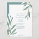Simples e elegante, estes convites de casamento são a forma perfeita de convidar todos os seus amigos e família para a sua grande primavera ou grande comemoração do verão. Apresenta folhas de ouro e de aquarela verde no fundo com texto de cinza personalizável. O fundo tem um fundo verde com folhas brancas e douradas.