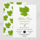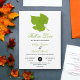 Este elegante convite de casamento outono é perfeito para um casamento moderno no outono. A simples design apresenta folhas verdes de outono com elegante tipografia preta e verde sobre fundo branco.