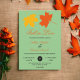 Este elegante convite de casamento outono é perfeito para um casamento moderno no outono. O simples design apresenta folhas laranja e amarelas com elegante tipografia negra e laranja sobre fundo verde-sábio