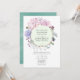 O estilo pastel chic pincelou o convite floral cor-de-rosa, roxo e menta com quadro geométrico dourado.