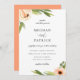 Pêssego impermeável, melaço, floral e folhagem botânica verde, convite para o casamento. A parte traseira do convite apresenta uma cor cantaloupe de tendência sólida.