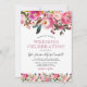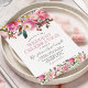 Convites de casamento elegantes, cor-de-rosa, com um fundo branco clássico, uma mostra de cor-d-água de flores e bagas cor-de-rosa, e um modelo de casamento editável que é fácil de personalizar.