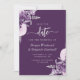 Este elegante casamento, exceto o cartão de data, apresenta buquês florais roxos e lilás disparados com verde folha de prata em dois cantos, em um fundo roxo. O texto personalizável combina fontes de cinza prateada se, itálico e de escrita manual. O verso apresenta um design floral roxo, lilás e prata.