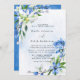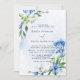 Design apresenta um elemento floral impresso em tons de azul e branco sobre folhas de folhagem coroa coroa coroa e gotas de neve e Scilla sobre fundo azul claro de aquarela. Excelente para as comemorações do casamento!