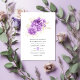 Shimmering convite de casamento floral roxo com folhagem falsa de marfim de folha e damasco de marfim aflita inverso.