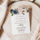 Este belo convite de casamento floral é perfeito para um casamento tropical. O design retrata uma pincelada rosa desenhada à mão, azul escuro e flores brancas marinhos, inspiradoras elegância, classe e beleza natural.
