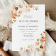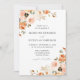 Convites florais de outono elegantes que exibem buquês de flores, suculentes e folhas de cor d'água em tons de rosa-pincel, pêssego, laranja, creme, marrom e verde nos cantos. Personalize os convites adicionando seus detalhes de casamento. Os convites de casamento florais do outono invertem-se para apresentar um fundo verde sólido.