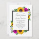 Design apresenta girassóis, rosas e margaridas elegantes com uma paleta de cores amarela, rosa/roxa e branca ouro. Design também apresenta uma estrutura de cinza de carvão. Você pode alterar a cor de fundo na parte frontal e na parte traseira para a cor de sua escolha ou deixar ambas definidas como brancas.