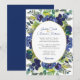 Cartão de Convite para Casamento de Frame Floral de Rosa de Marinho de Aquarela Elegante e Branco.
